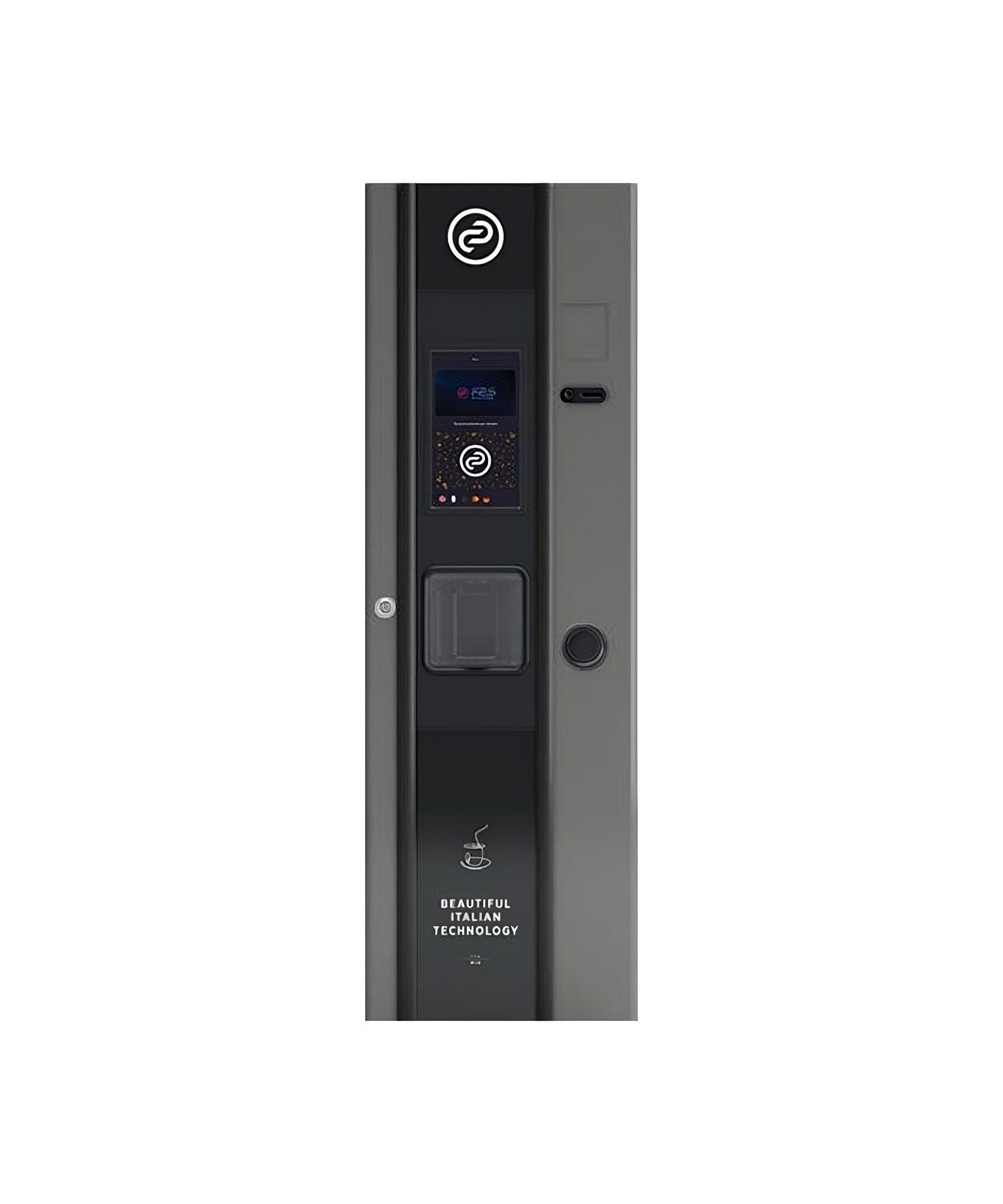 Fas Mia, ein geräumiger und erweiterter Verkaufsautomat, an dem heiße Produkte verkauft werden. Es bietet Platz für bis zu 500 Threads, 6 Container für Instantprodukte, einen Gerätecontainer, eine 13,3-Zoll-Touch-Schnittstelle und lokale oder Remote-Programmierung mit Fas Cloud+. Erhältlich in zwei Farben: Grau oder Graphit.