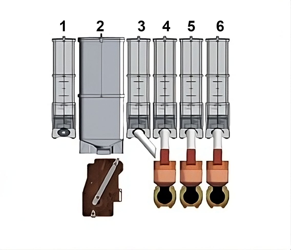 Im Vergleich zu herkömmlichen zentralisierten Absaugmethoden verfügt jeder Mixer über eine individuelle Absaugung, dank eines Sauggebläses, das gleichzeitig mit der Zubereitung des Getränks arbeitet und Wasserdampf aus Behältern mit löslichen Produkten entfernt.